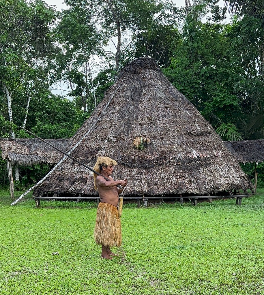 As we entered the huts, young children rushed up to us and used their thumbs to paint our cheeks with achiote–a blood-red substance made from the annatto plant. Then, they grabbed our hands and invited everyone to march in what was described as a “friendship dance” around the hut.