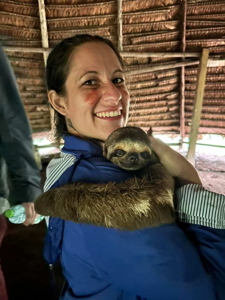 A real, honest-to-god, wild sloth was just hanging off of her little body. It turns out, she and this sloth have bonded and now she keeps it as a pet. It’s name is Rosita and all of us took turns, after the dance, holding her and falling head-over-heels. She’s so sweet and looks at you with the most lazy, loving smile. So, naturally, now I want one. I wonder how my fur children would react to a sloth sibling?